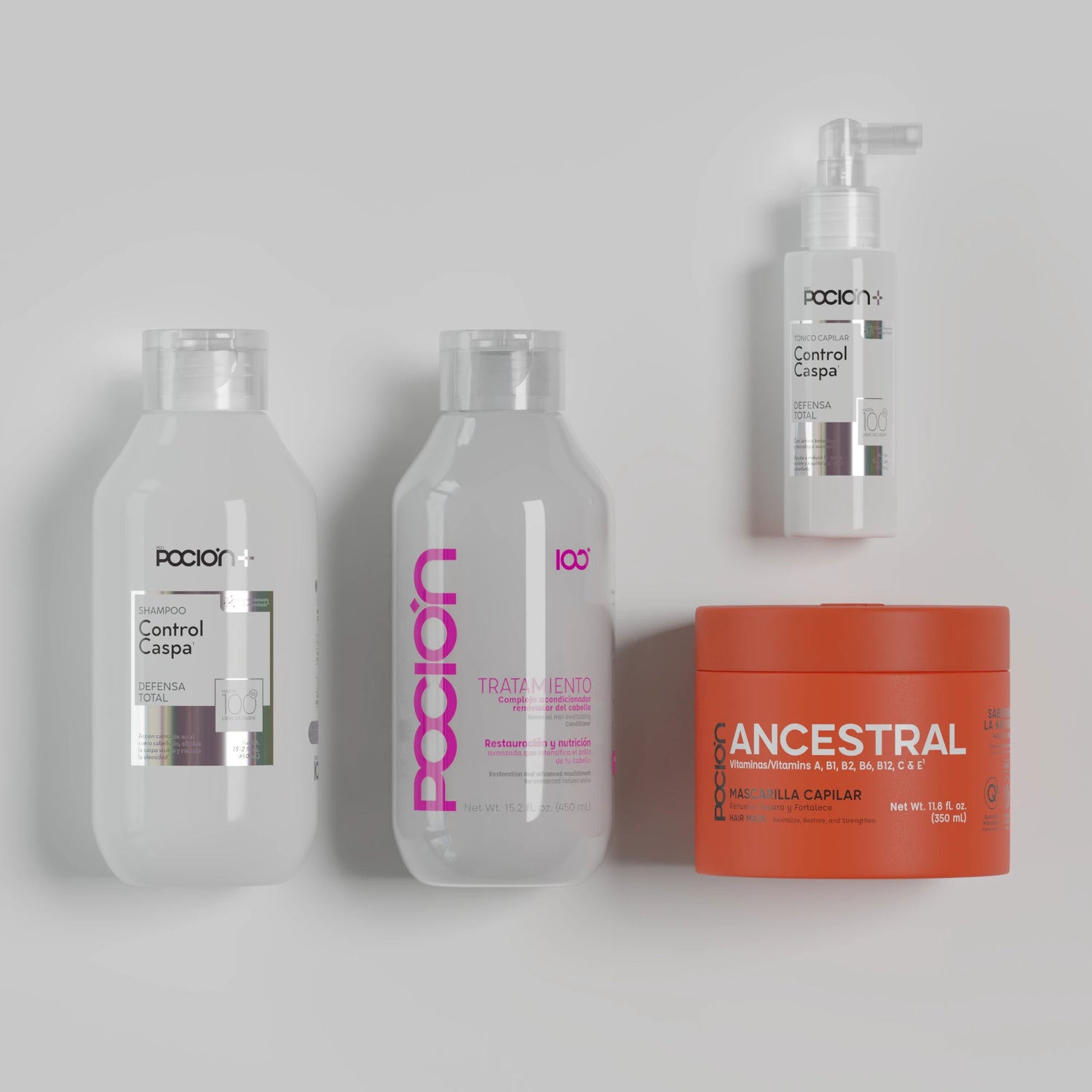 Contiene 2 productos: Shampoo Control Caspa,Tratamiento Acondicionador Reparación, Mascarilla Ancestral y Tónico Control Caspa.